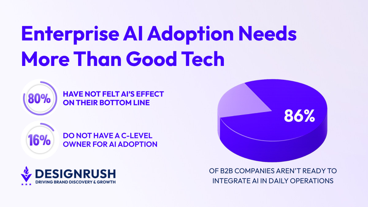 - 86% of B2B leaders say their organizations aren’t ready for AI, revealing a widespread gap between ambition and actual readiness.