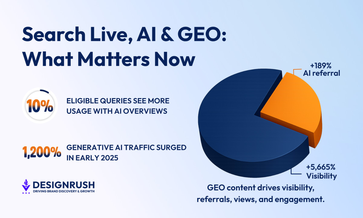 - Google reports AI Overviews drive 10% more usage for eligible queries, showing brands that rely on traditional SEO risk missing visibility without GEO.