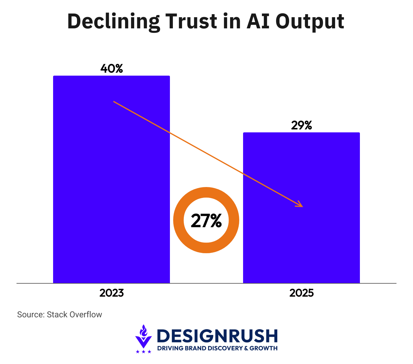 Only 29% of developers say they trust AI-generated output in 2025, down from around 40% in 2023, according to Stack Overflow’s 2025 Developer Survey.