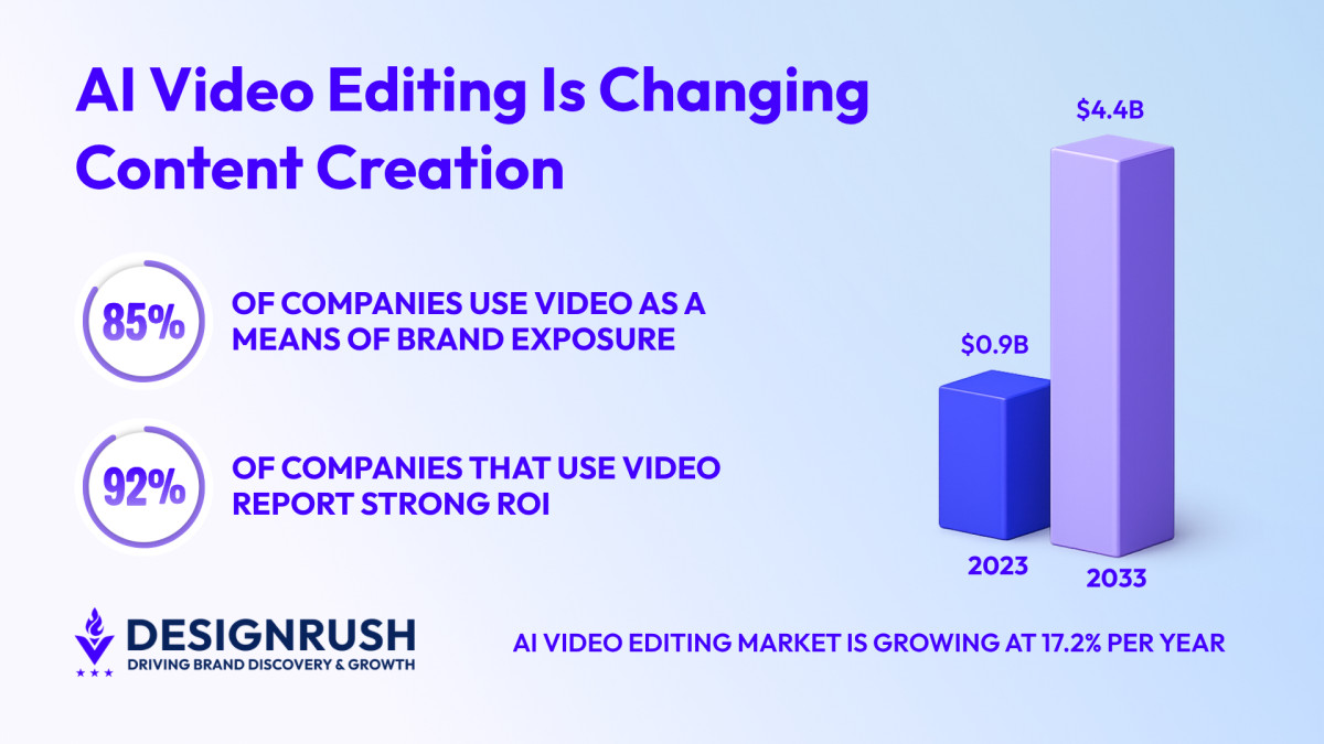 The AI video editing market is growing at 17.2% a year and is expected to reach $4.4 billion by 2033, up from $0.9 billion in 2023, according to Electro IQ.