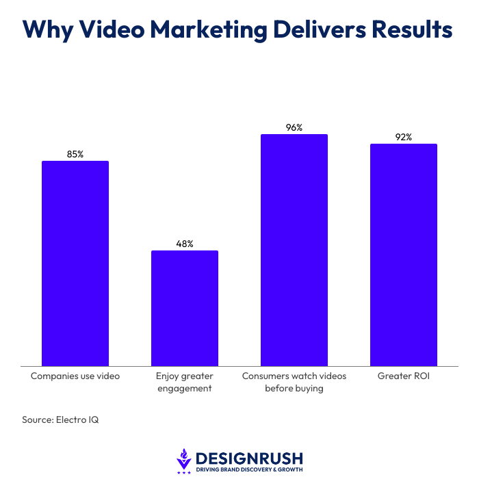 Video has certainly become one of the go-to marketing tools used by brands worldwide, with 85% of companies using it as a means of exposure, according to the same Electro IQ report