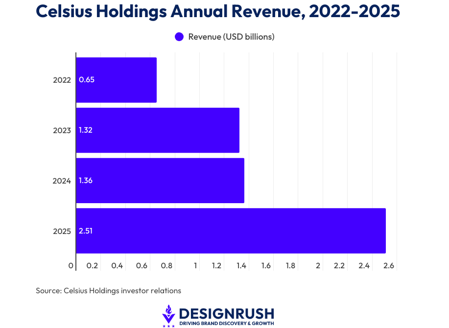 Celsius Holdings, the parent company of Celsius, Alani Nu, and Rockstar Energy, also reported $2.5 billion in full-year 2025 revenue.