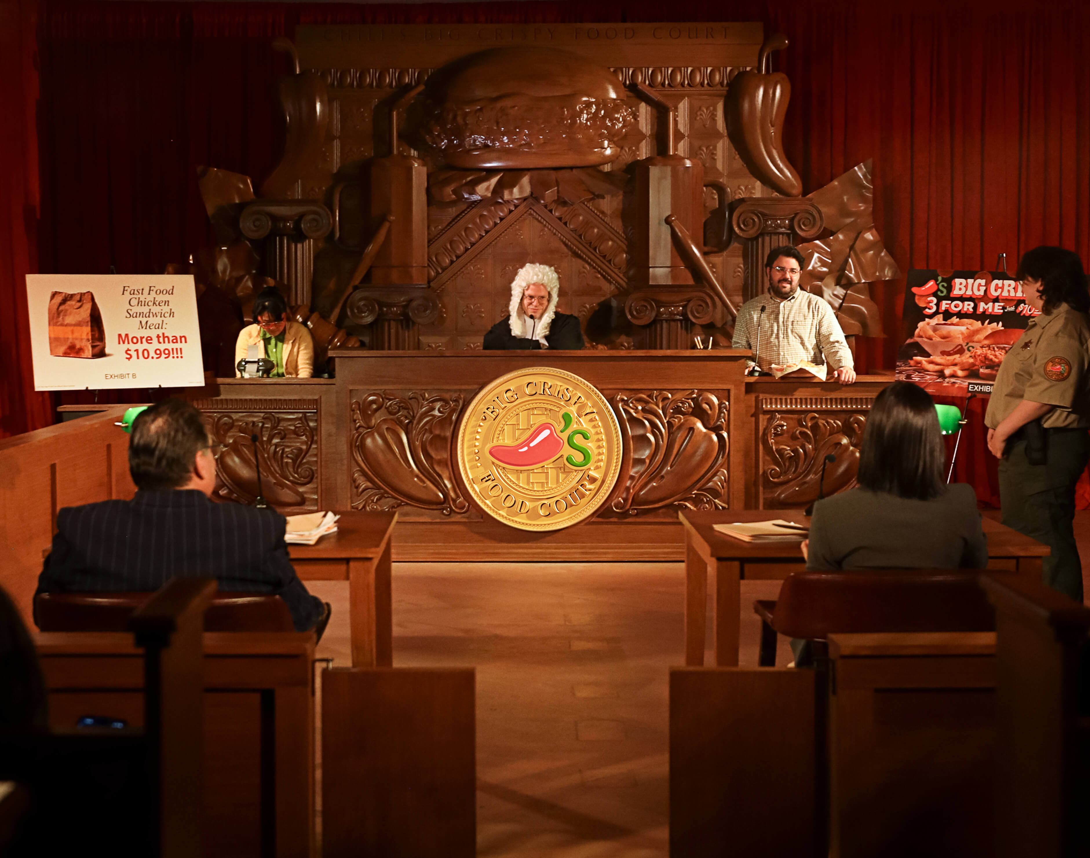 Attendees leave with a meal and the chance to deliver their judgment to a Court TV-style correspondent.