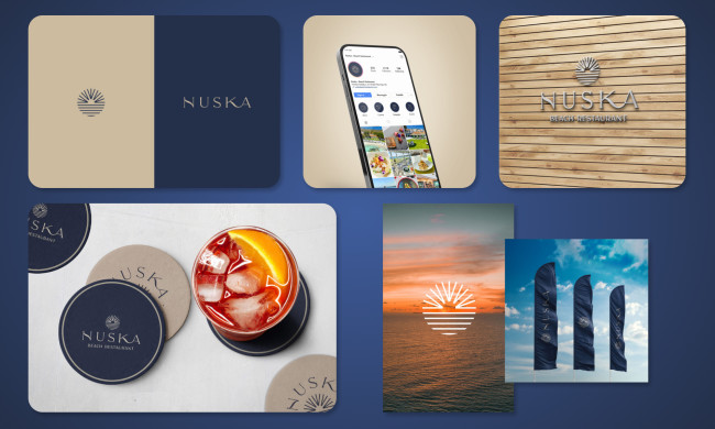 Studiothathari’s logo for Nuska Beach Restaurant & Bar captures the coastal luxury lifestyle with a design that balances serenity and strength.