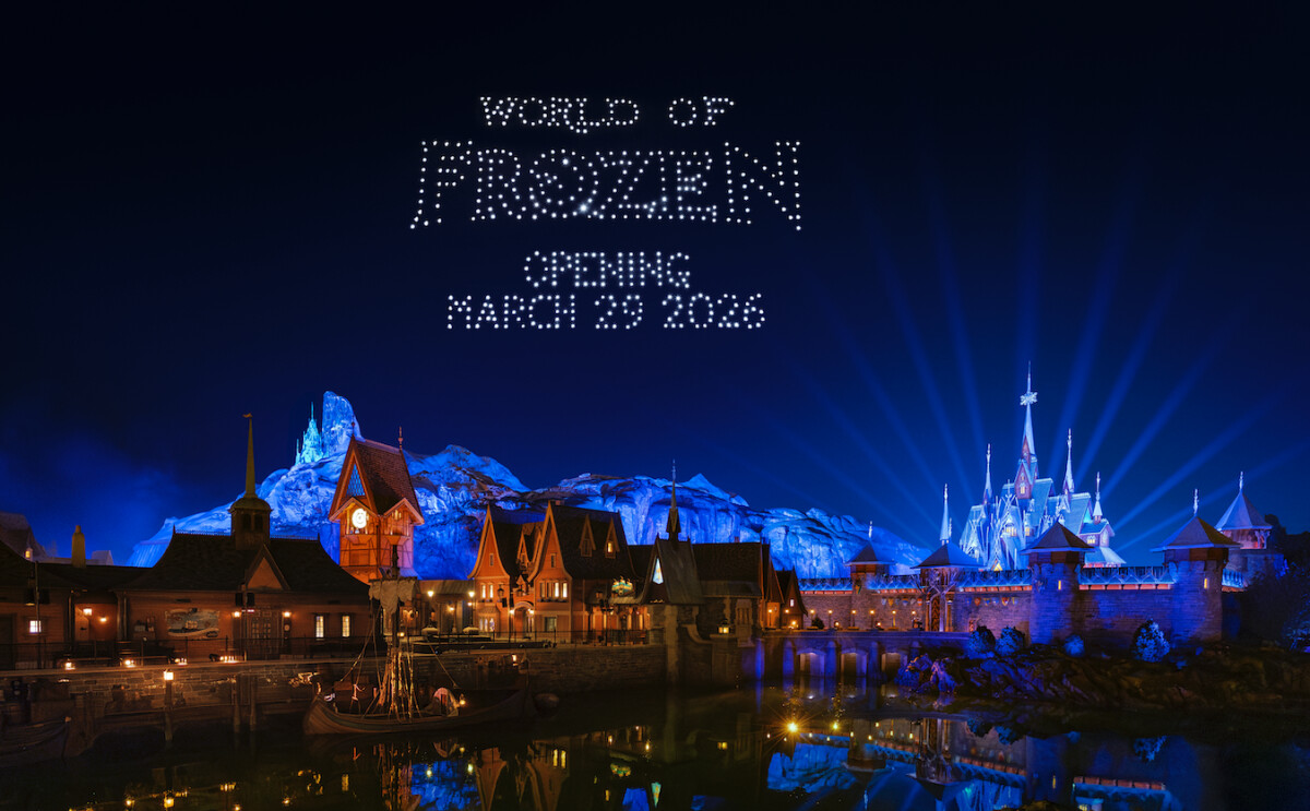 The opening date arrived with a quiet bit of theatre: hundreds of drones rose above Adventure Bay and assembled Arendelle’s emblem before aligning into the numbers for 29 March 2026.