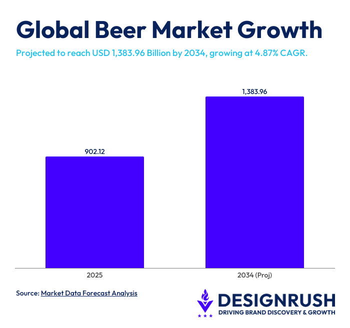 The global beer market is projected to reach USD 1,383.96 billion by 2034, growing at a 4.87% CAGR.