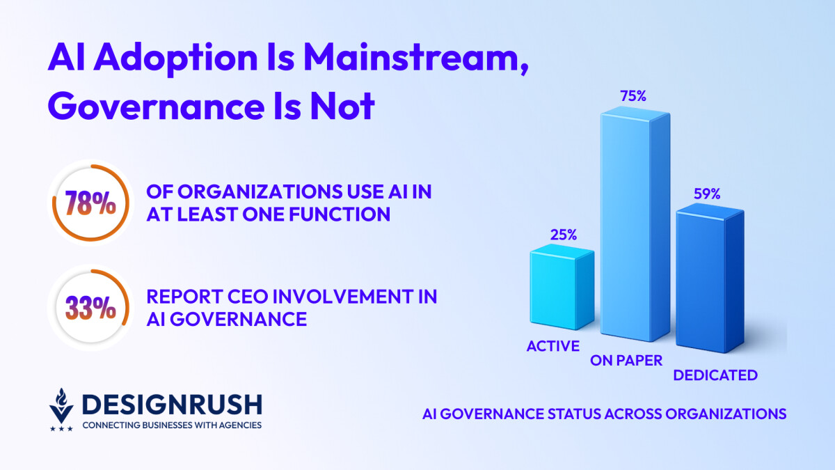 These data points show that while businesses are adopting AI at scale, governance often remains inconsistent or underdeveloped: