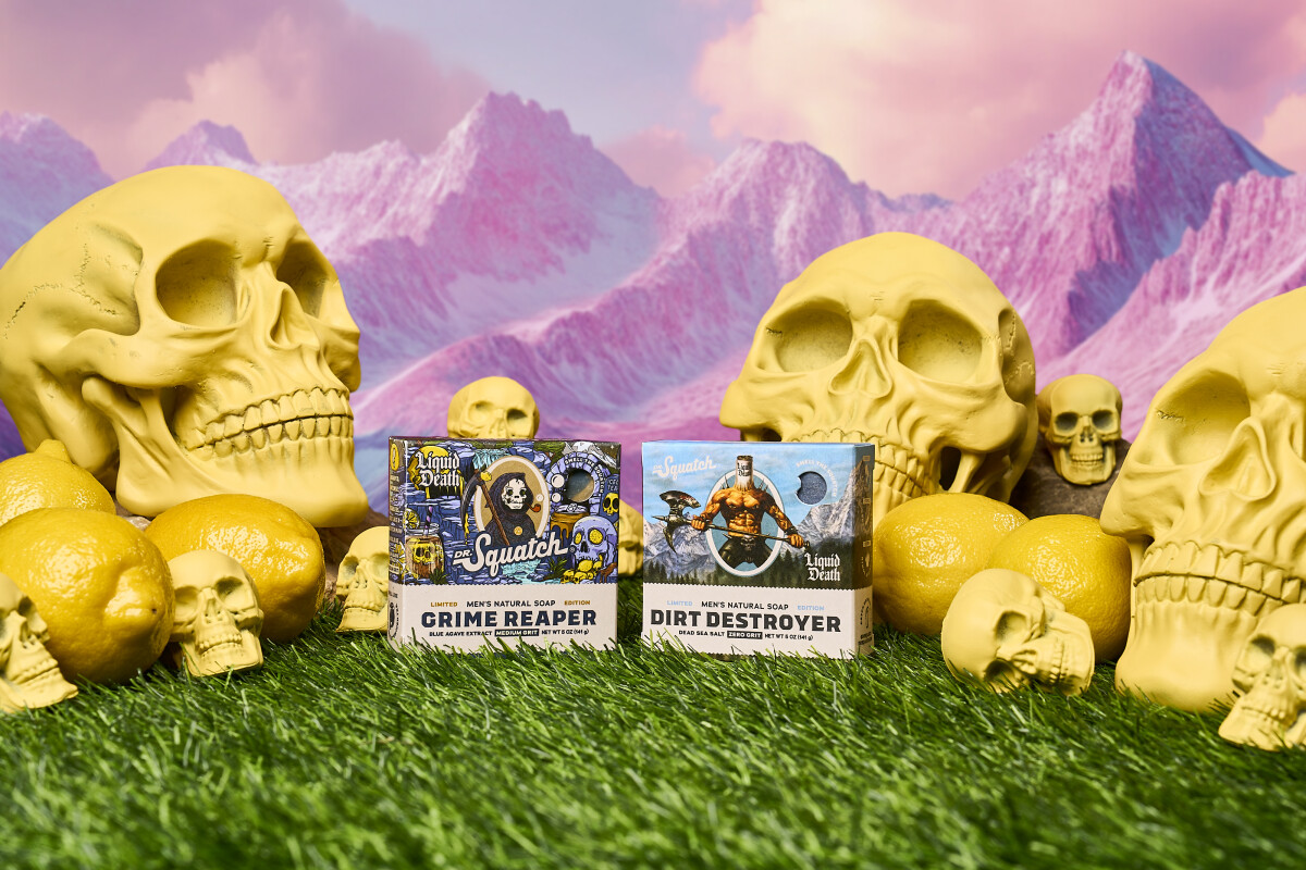 - Liquid Death and Dr. Squatch reunite to launch “Grime Reaper,” a limited-edition bar soap made with real mountain water.
