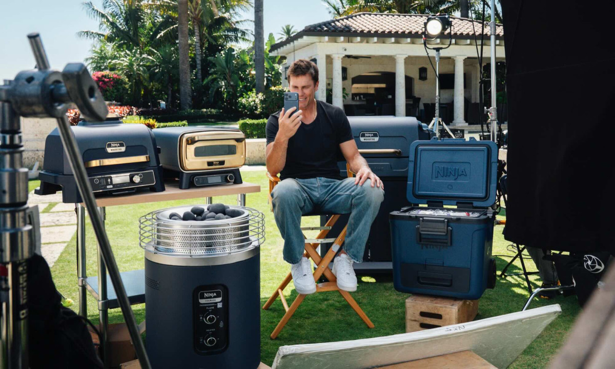 Ninja sent Tom Brady door to door across Greater Boston with a van full of outdoor cooking equipment.