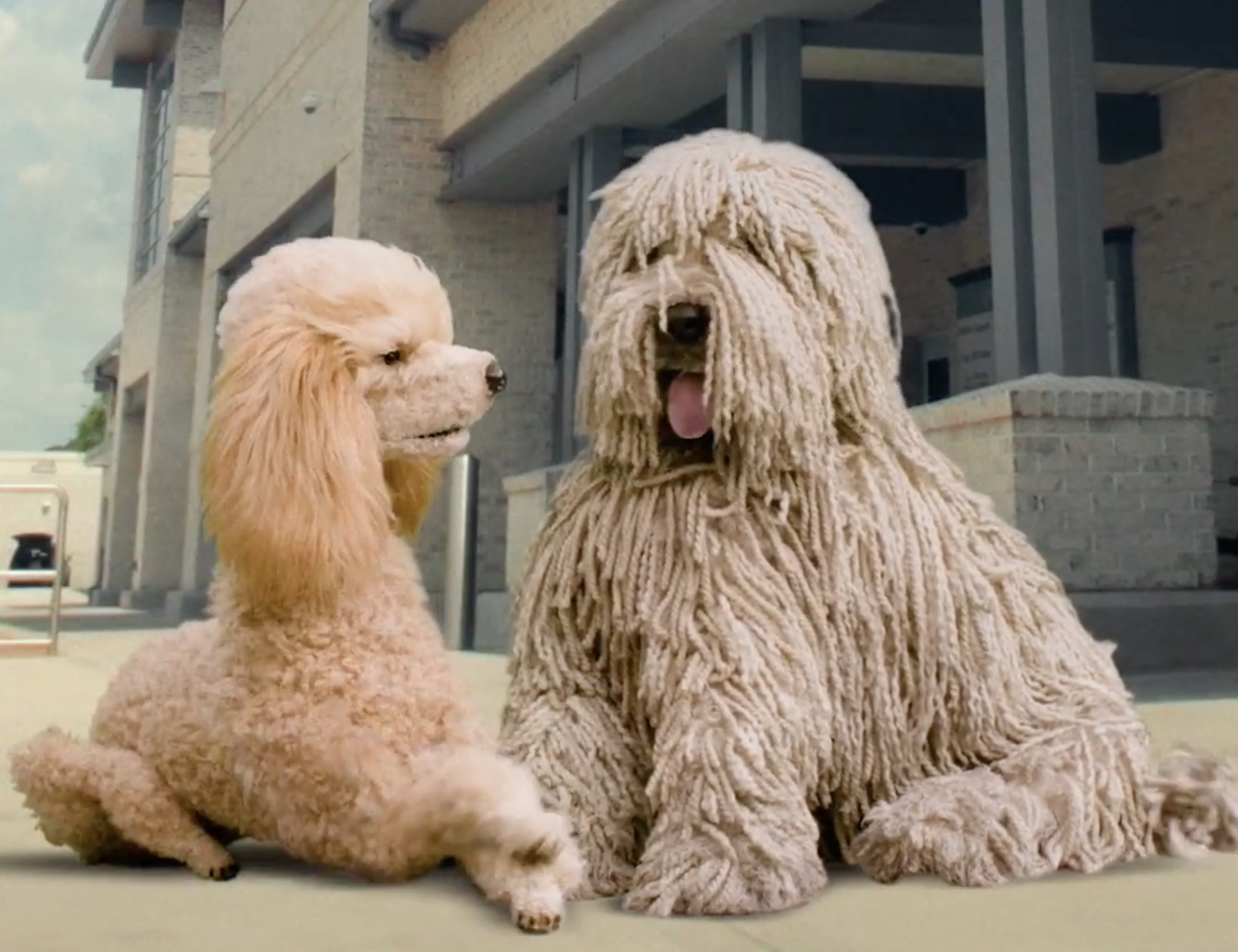 The dogs are warm, tactile, and slightly absurd in a way that makes the emotional underpinning easier to receive.