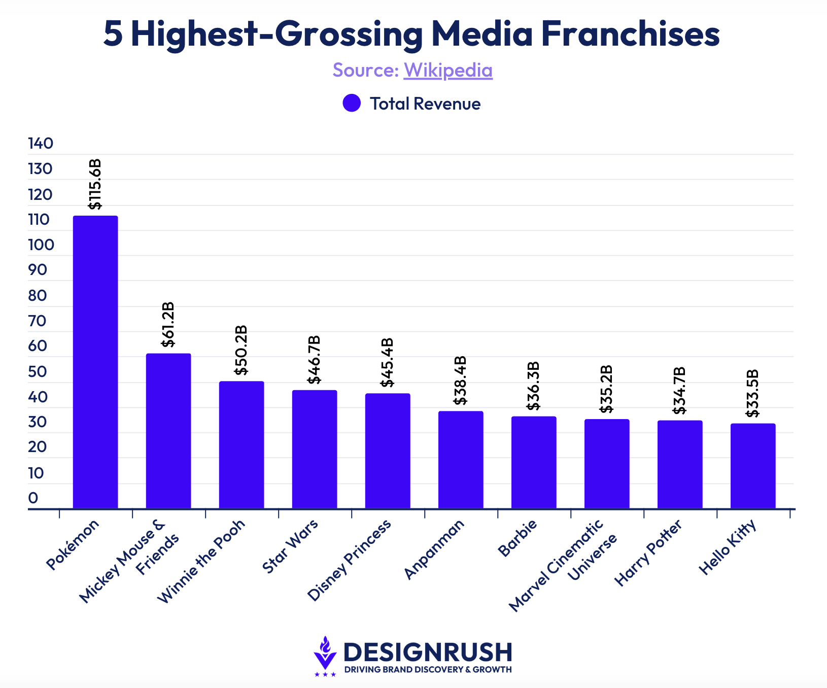 Pokémon stands as the largest media franchise in the world, with $115.6 billion in lifetime revenue.