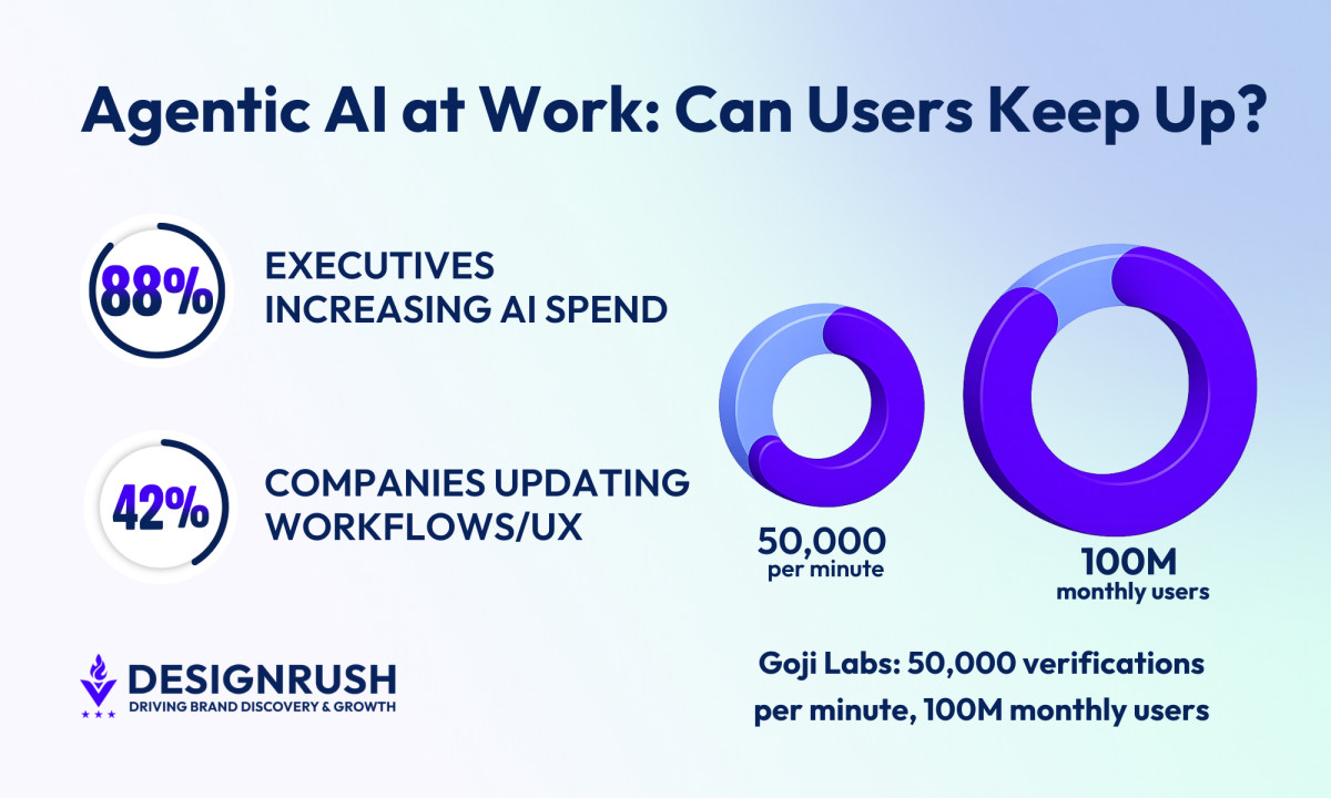 - PwC shows 88% of executives are increasing AI budgets, but only 42% are redesigning processes around AI agents, meaning brands risk slow adoption unless UX and decision flows are redesigned.