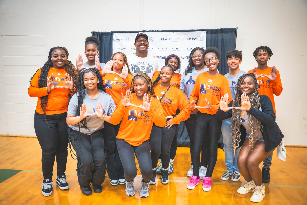 Partnering with GlassesUSA.com allowed the linebacker to deliver free eye exams and prescription glasses to local students in need.